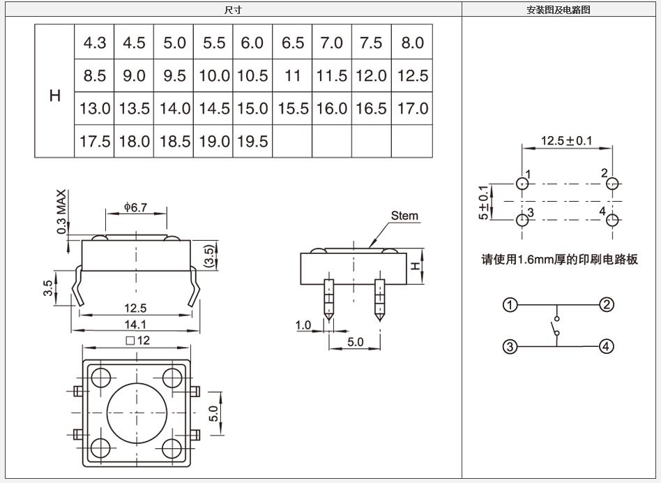 12*12轻触开关系列使用注意事项: