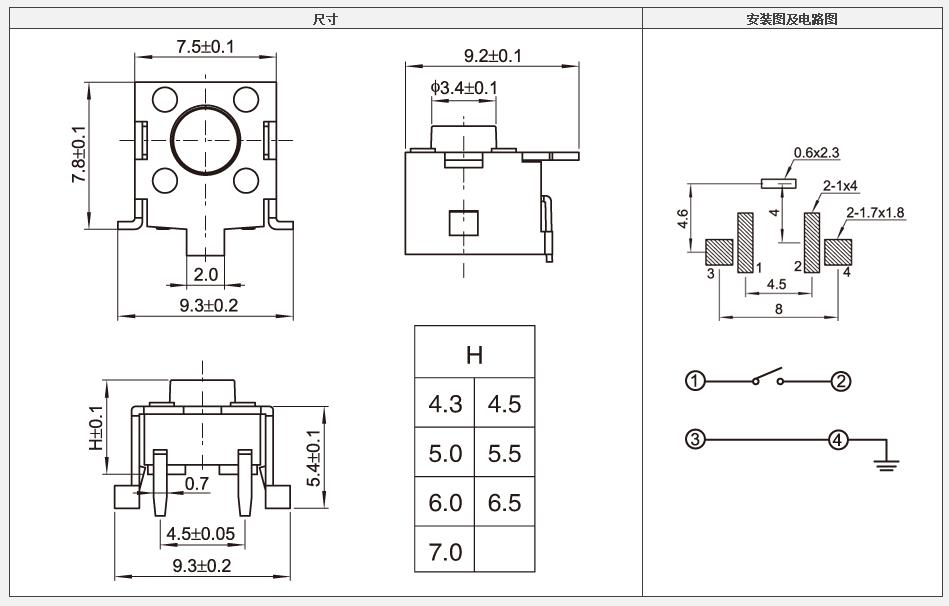 高寿命6*6侧按带支架轻触开关, 6*6侧按轻触开关厂家,尺寸为:长6mm宽6mm高4.2/4.5/5/5.5/6/6.5/7/7.5-15mm,力度有:160克和250克可选择。产品广泛运用适用于电子化的各种音响设备、办公设备、通讯设备、测量仪器、TV、录像机、汽车等各种操作。