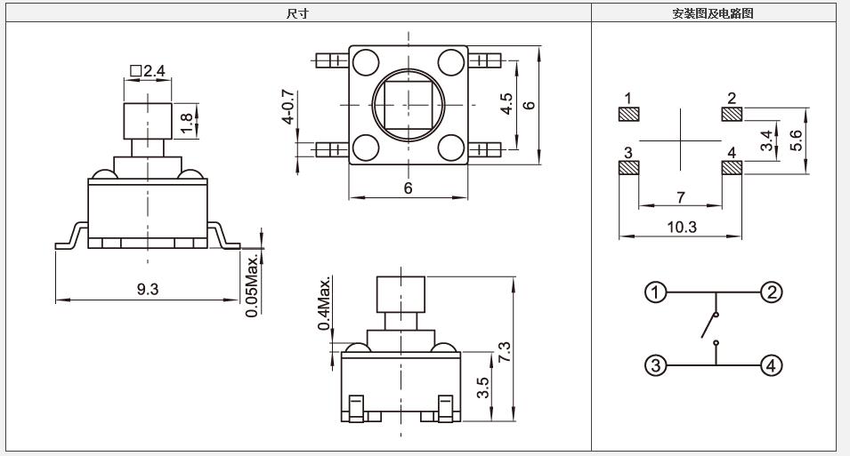 6*6方头轻触开关,6*6方头按键开关,6*6方头立式贴片轻触开关厂家规格书:
