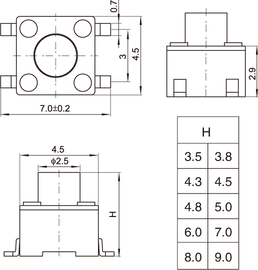 一.6*6贴片轻触开关:也叫SMD轻触开关,是一种比较有代表性的常开轻触开关