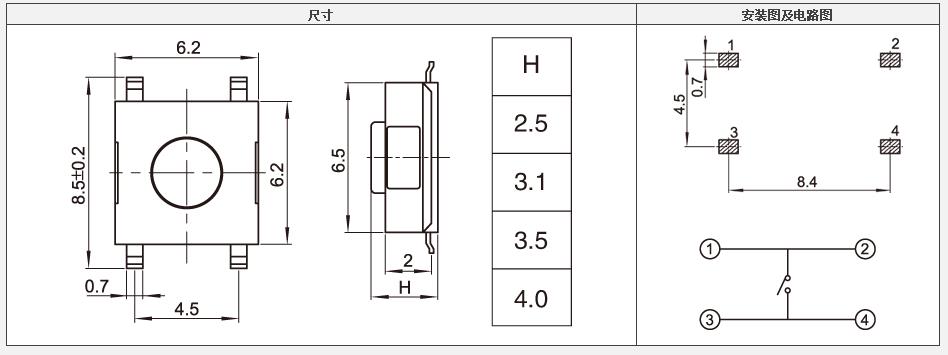 健康秤轻触开关介绍:6.2*6.2轻触开关YX-I001也叫做:贴片6.2*6.2 贴片轻触开关,6.2*6.2贴片轻触开关,高寿命按键开关厂家,产品广泛运用适用于电子化的各种音响设备、办公设备、通讯设备、测量仪器、TV、录像......