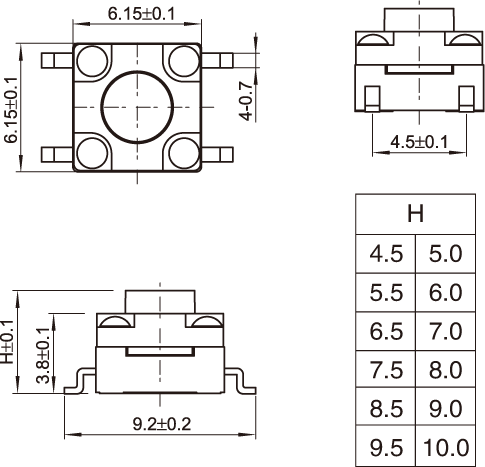 防水轻触开关尺寸图:
