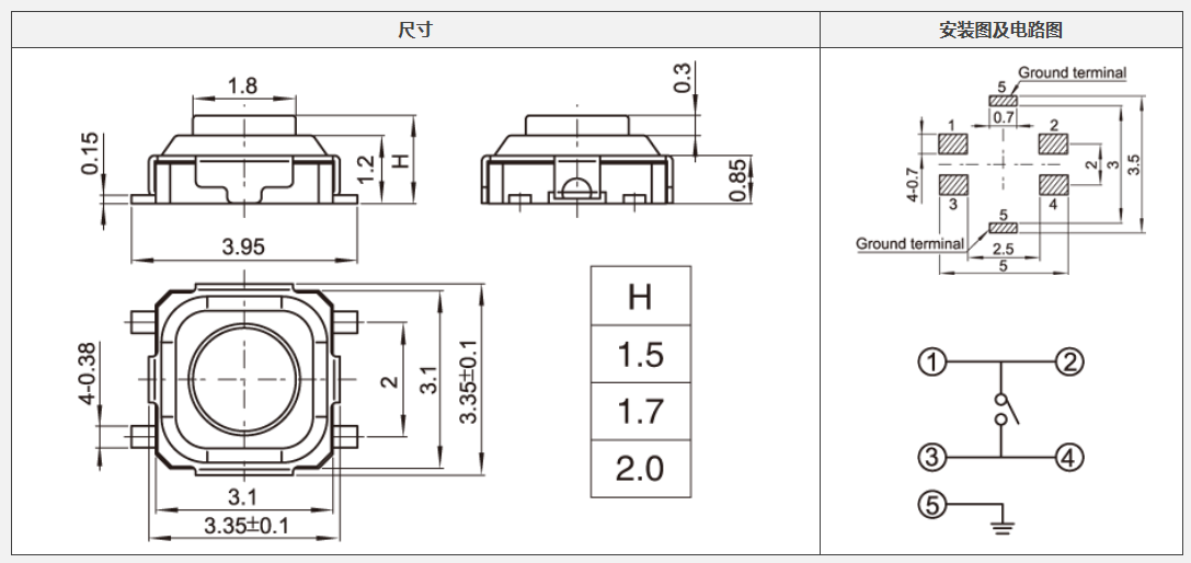 3*3轻触开关,3*3*1.5轻触开关,四脚贴片轻触开关,龟型轻触开关电路图: